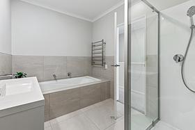 Downstairs flows easily with an open plan living area that connects to the private patio. The kitchen is sharp and stylish, complete with a breakfast bar that makes weekday breakfasts or weekend catchups a breeze. A separate laundry, storage, and guest toilet keep things practical.