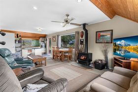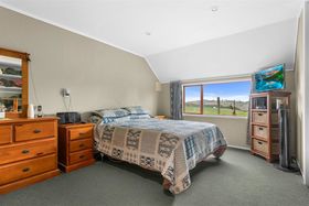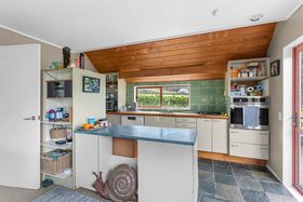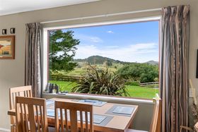 As you journey up the winding private driveway, you'll be met with a warm board and batten home. This lovely residence has undergone modifications and expansions over time, now offering five bedrooms, a storage room, and two family bathrooms, with plenty of scope to refurbish, rebuild, or leave as is. The open-plan kitchen flows through to the living area, where a cosy firebox adds warmth and comfort through the colder months.